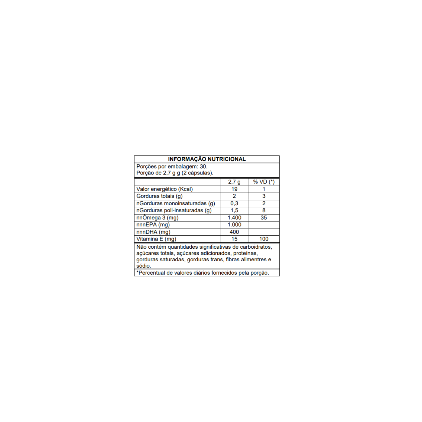 - (Os %VD para EPA/DHA podem não estar especificados na Tabela; manter conforme rótulo.)